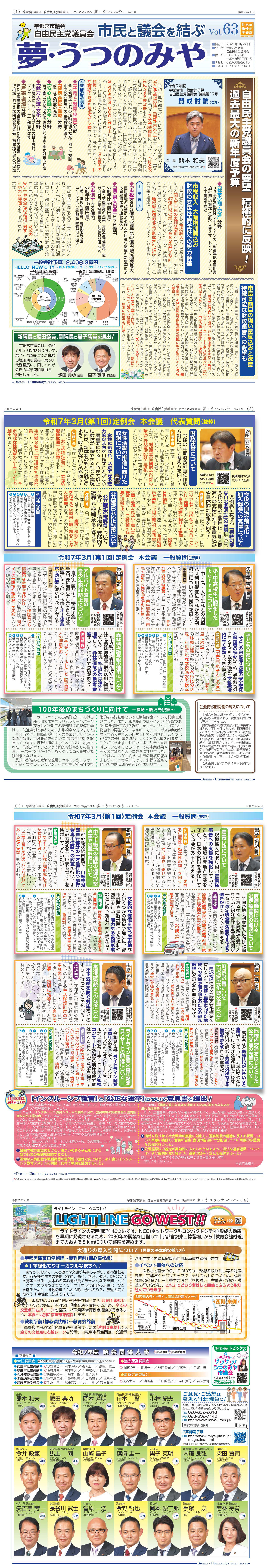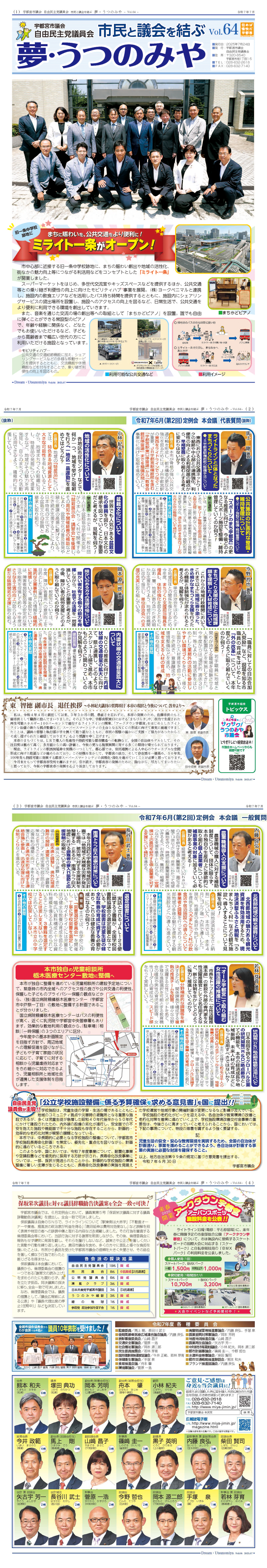 宇都宮市議会自由民主党議員会が発行する市民と議会を結ぶ広報誌「夢・うつのみや」は、新聞折り込みと各家庭に配布しておりますが、郵送をご希望の方は、自由民主党議員会派までお電話か(Tel.028-632-2618)または